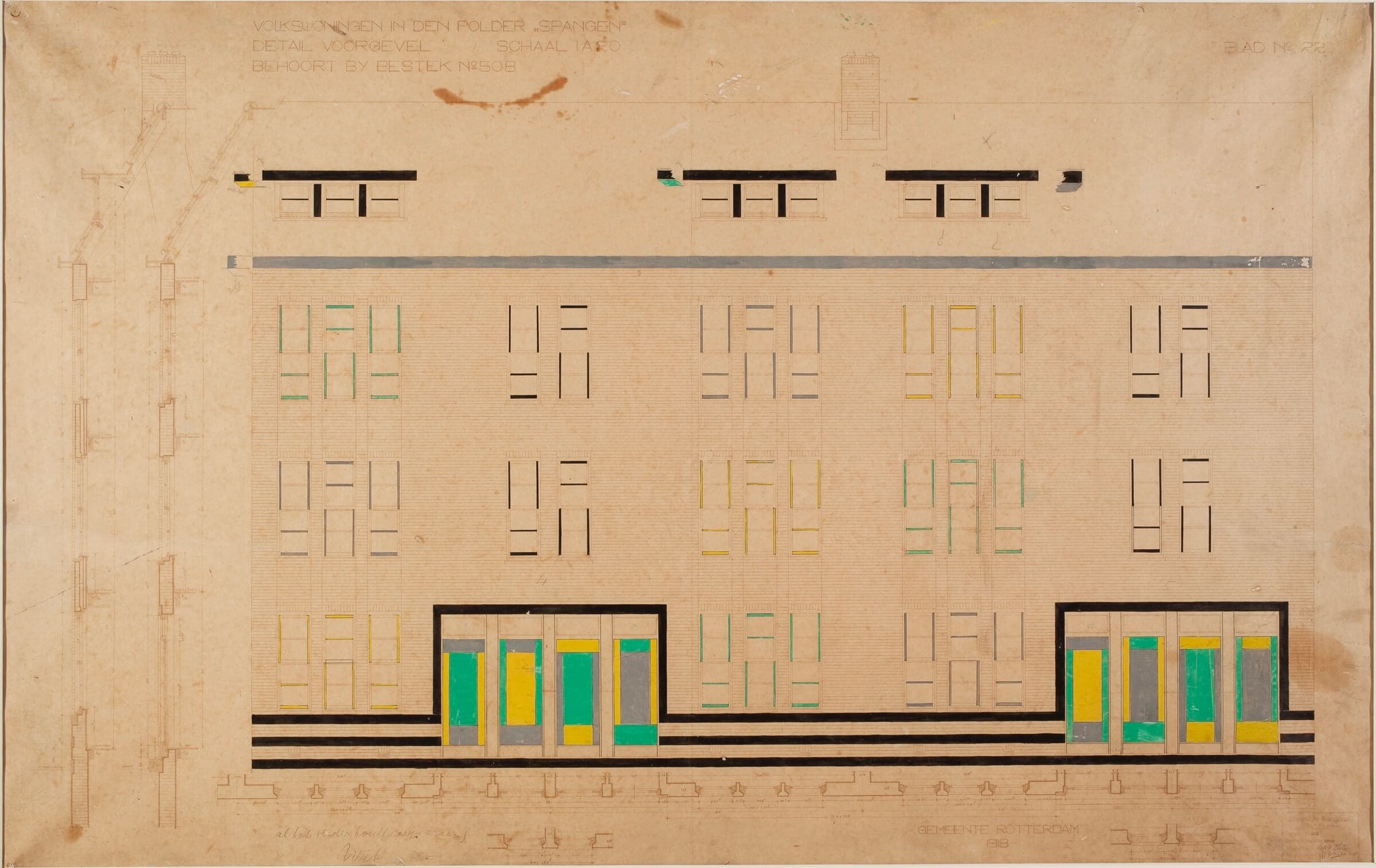 Credits: J.J.P. Oud in collaboration with Theo van Doesburg, housing complex Spangen block I and V, Rotterdam, 1918-1919, Het Nieuwe Instituut Collection Download Image