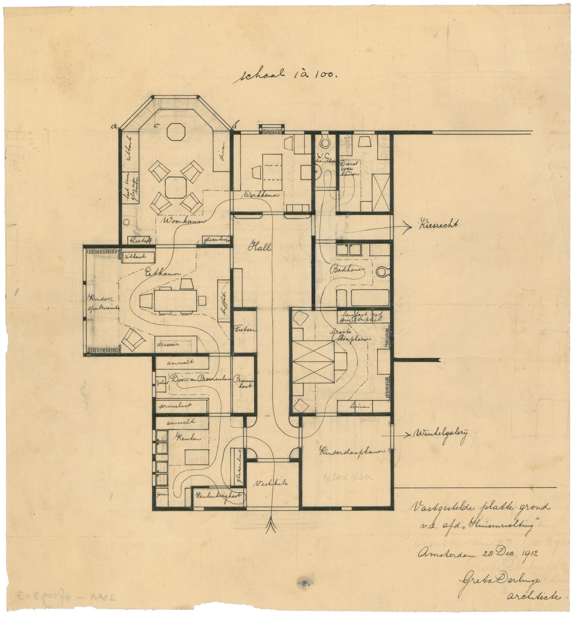Nevertheless, Kropholler managed to establish herself as an architect and build a lifelong career. This was largely thanks to her marriage to architect J. F. Staal and the professional network he introduced her to. However, this was certainly not the only reason. Kropholler focused strongly on residential construction, interior design, and design ‘for the family’. This resonated with clients’ perceptions of women as experts in housing and housekeeping – a stereotypical image that worked to her advantage.