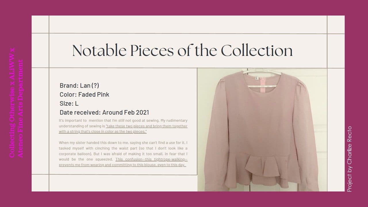 Given such, I wanted to impart the same (if not better or equally complex) experience to my students. As a parameter, I allowed them to go through CO’s case studies and ALIWW’s collection in the ARTS181 class I designed for one semester, eventually leading to an exhibition.