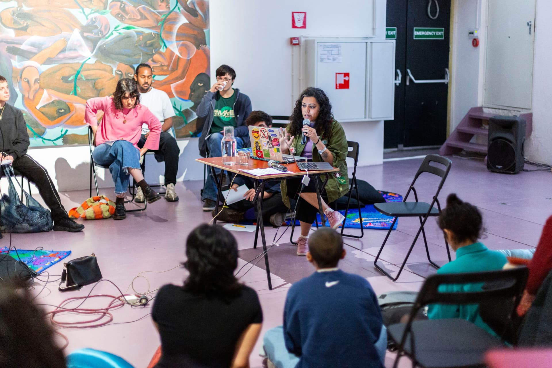 On 9 July 2024, Meenakshi visited Kunstinstituut Melly for a more intimate Citizen’s Circle in collaboration with HipHopHuis. The event was part of Melly’s Teach-In sessions. These voluntary internal staff meetings create space for open conversation, exchange and information sharing. The pressing issues of the current political climate led to different opinions in the group about what the focus of the Citizen’s Circle should be. Should we talk about tools for political activism? Or should the space created simply be a place to sit and discuss political issues, concerns and personal experiences? The event led to deep conversations about solidarity and allyship, and asked participants to think about how these work in turbulent times.