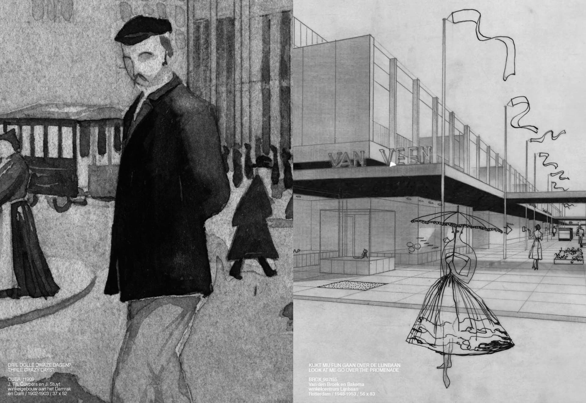 The fifth exhibition in the series Surprising finds from the collection focuses on examples of fashion in various architectural drawings from the archives of Het Nieuwe Instituut.