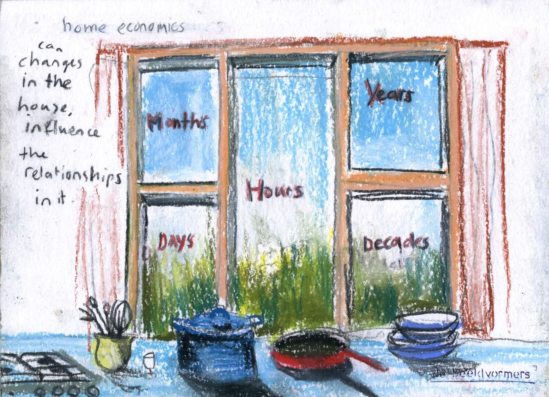 De curatoren van de tentoonstelling _Home Economics_ in het Britse paviljoen in Venetië dit jaar, plaatsten deze uitspraken als onderschriften bij een serie foto's van hedendaagse leefruimten. De woning wordt hier voorgesteld als een plek die heen en weer beweegt tussen de sentimentele bestendigheid van het gezin en de cyclische tijdelijkheid van de huidige huisvestingpraktijk.