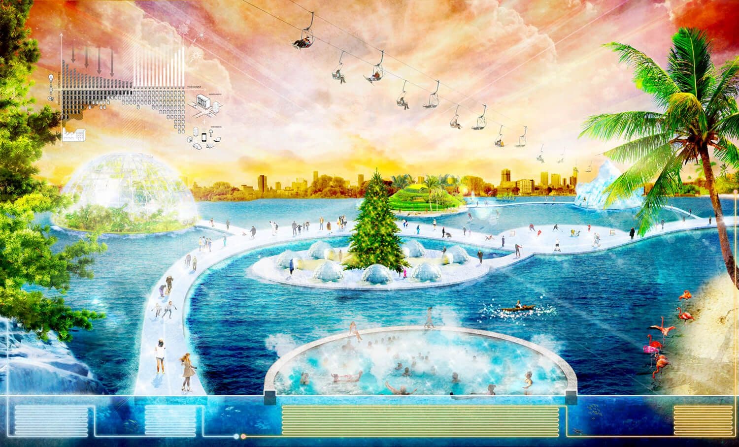 Fossiele energie staat gelijk aan vervuilende consumptie, vandaar de morele druk om energiegebruik te verminderen. Maar in 2030 zijn hernieuwbare energiebronnen geïntegreerd in onze gebouwde omgeving. Schone energie is er in overvloed en kost niets. De noodzaak er zuinig mee om te gaan vervalt. De Kralingse Plas wordt een zonnige oase in regenachtig Nederland, waar een permanente buitenschaatsbaan het jaarlijks Fata Morgana van de Elfstedentocht verdringt. De energietransitie biedt Rotterdam het perspectief van een overvloedige stad.