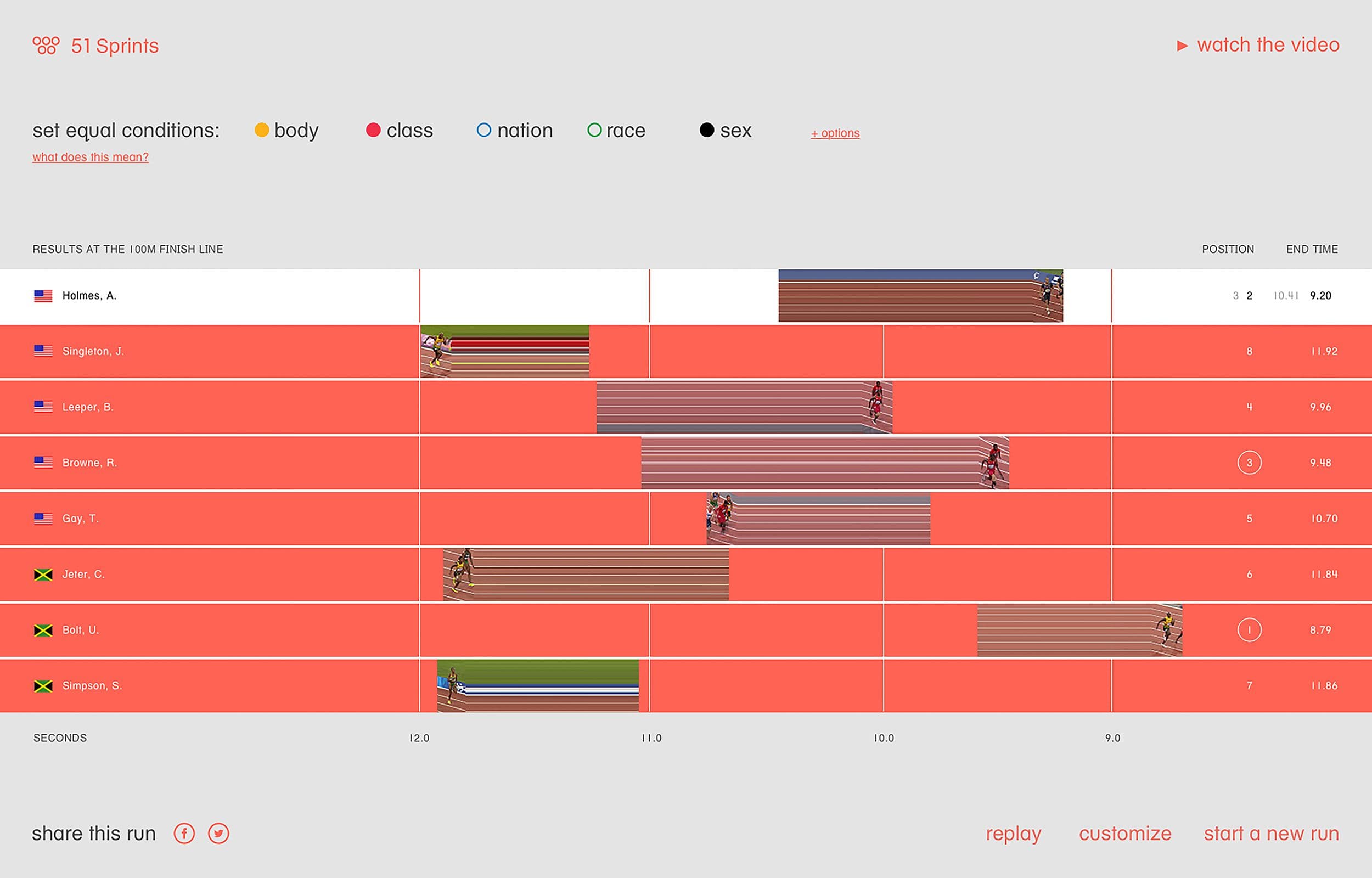 Random Studio is een digitale creatieve studio die de grenzen van zowel technologische innovatie als menselijke perceptie probeert op te rekken. 51 Sprints leent zich perfect om de ambitie en doelstelling van het bureau te onderstrepen. Als partner van Yuri Veerman en Het Nieuwe Instituut, concentreerden ze zich op het vertalen van de onderzoeksresultaten en belangrijkste conclusies naar een interactieve belevenis. Random deed de videomontage, technische realisatie, en het interactie ontwerp.