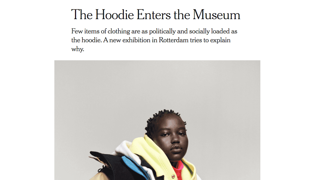 The New York Times "The first exhbition devoted to (the hoodie's) powerful and political nuances".