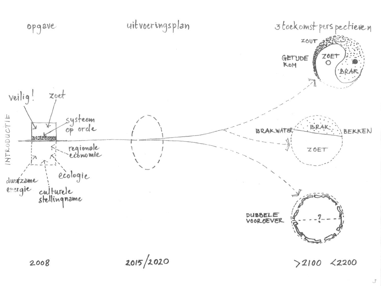 Zo is door H+N+S binnen een consortium van een ingenieursbureau, een baggerbedrijf en een energiebedrijf gewerkt aan toekomstscenario's voor de Afsluitdijk rond het jaar 2200. De verwachte zeespiegelstijging van 1,5 m tot 3 m betekende dat de centrale vraag in het project luidde: hoe kunnen we in de toekomst het water weg pompen? Binnen een cyclisch proces zijn door het team verschillende vormen van energieopwekking op de planlocatie losgelaten, waarop nieuwe onderzoeksvragen rezen en waarop weer andere scenario's werden getoetst. Gaandeweg bleek de opgave niet alleen een technisch werk, maar vooral een gebiedsontwikkelingsproject met ruimtelijke aspecten.